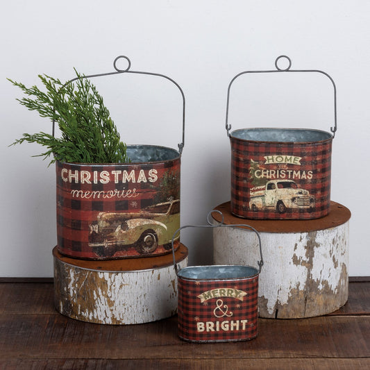 Rustic Red Truck Tin Bucket Set